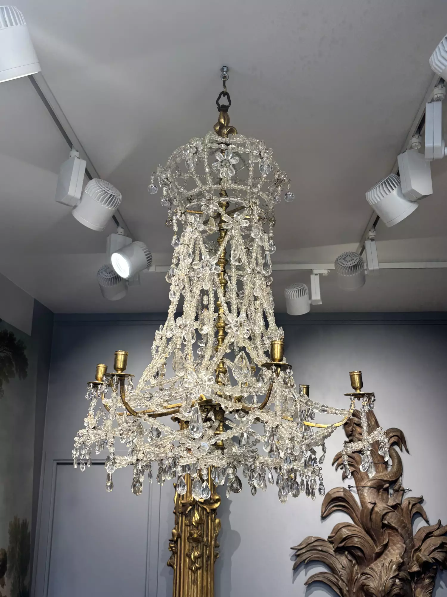 -Un lustre similaire est visible sur une huile sur toile conservée au château de Versailles (MV 4366) représentant une séance du conseil des ministres en présence du cardinal de Fleury et du régent vers 1720.