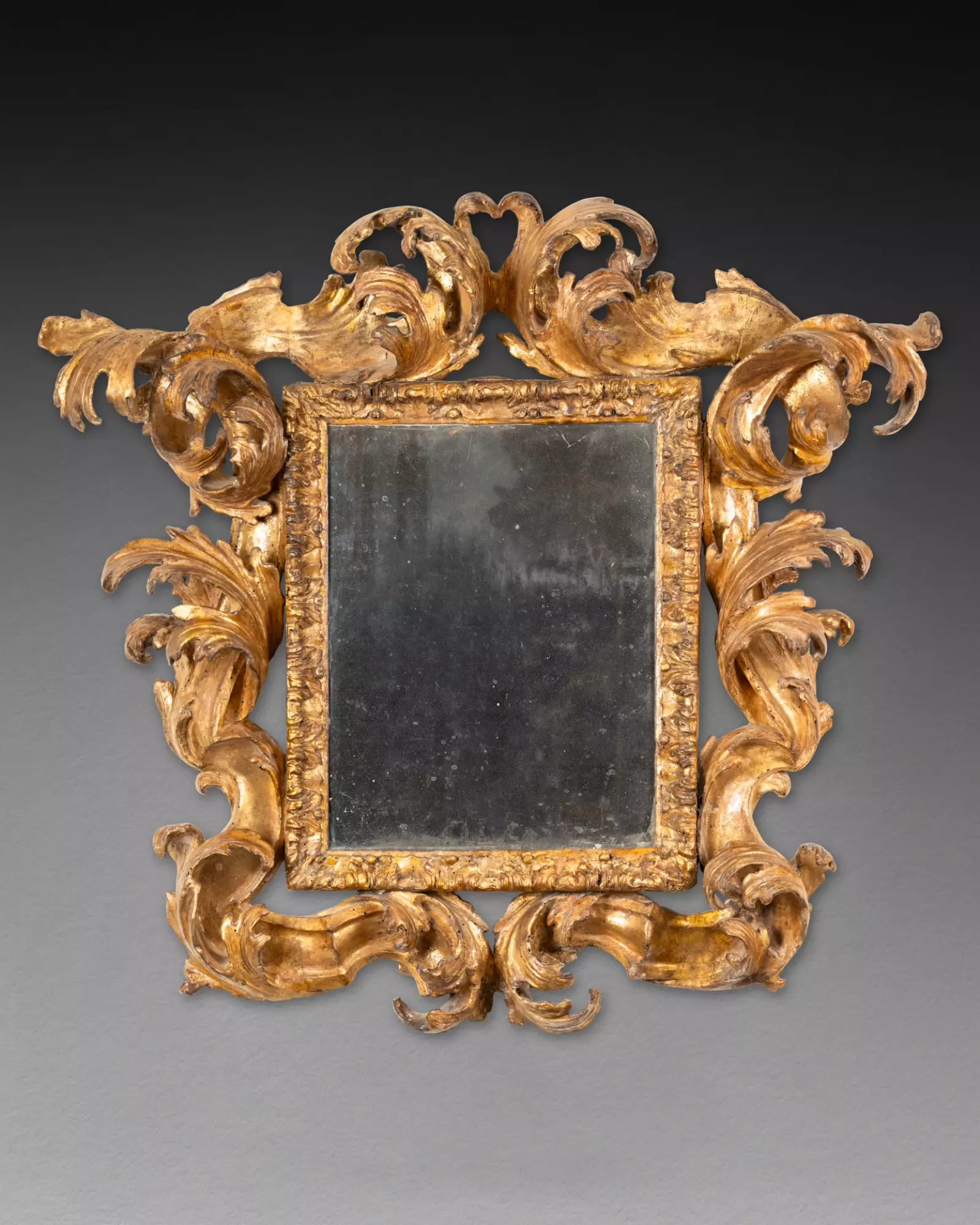 Toutefois notre miroir se distingue nettement de ces productions postérieures par la puissance de sa sculpture, la générosité des volumes et la maitrise absolue du fort relief qui singent une ouvre autographe , réalisée à l’apogée de sa carrière, dans les décennies 1680-1690.